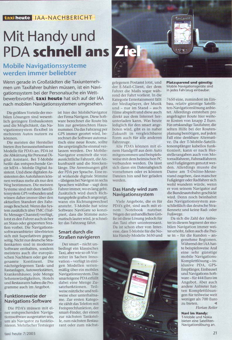 Mobile Navigationssysteme (Taxi heute)